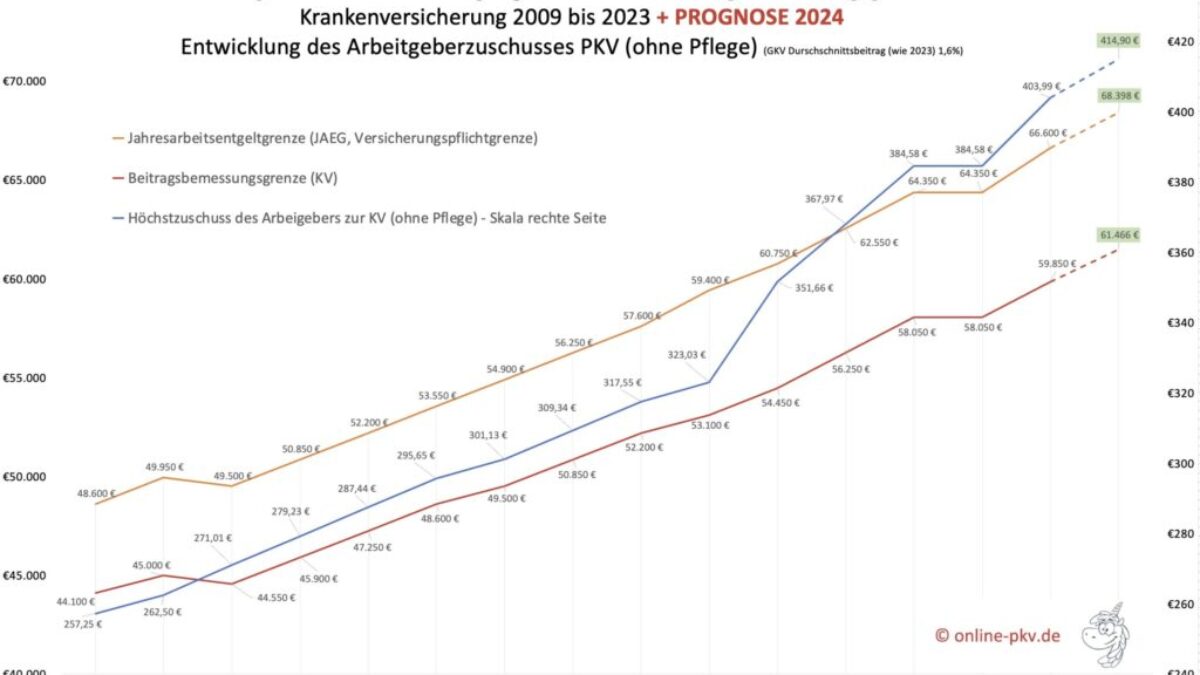 Arbeitgeberzuschuss 2023 zur Privaten Krankenversicherung (Prognose)