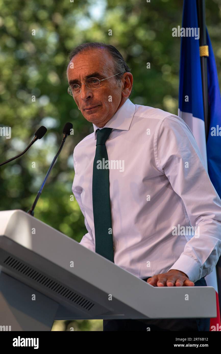Eric Zemmour arrives at the meeting for the last day of the summer