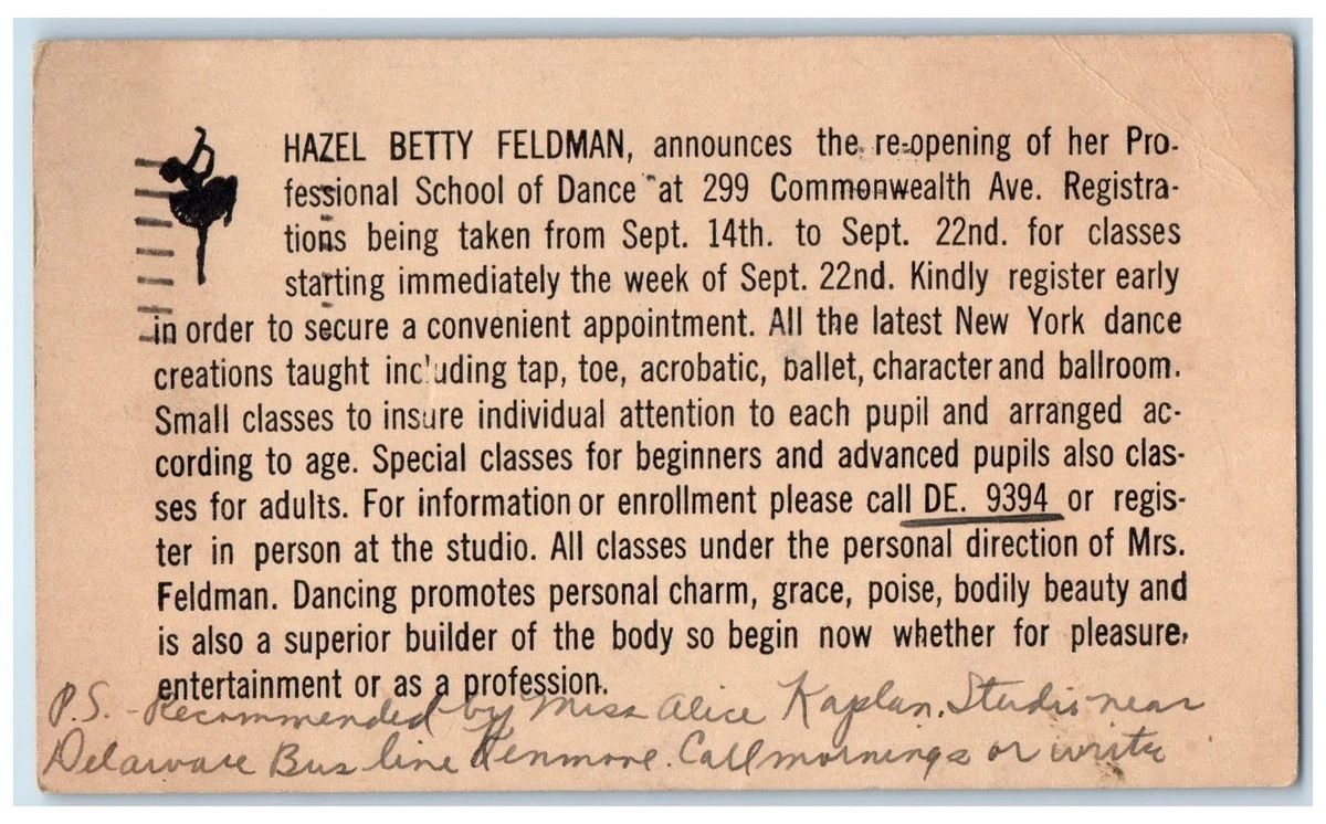 1942 Dance School Tap Toe Acrobatic Ballet Buffalo NY Advertising